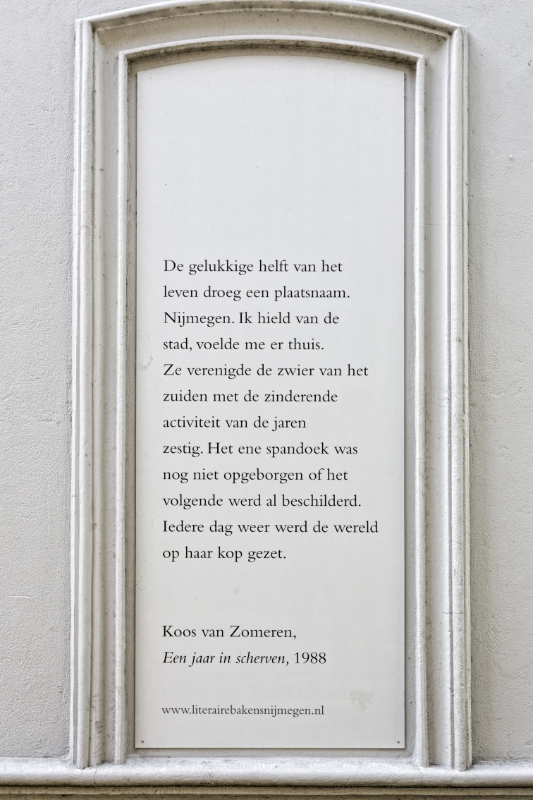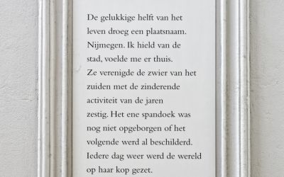 De gelukkige helft van het leven droeg een plaatsnaam. Nijmegen. Ik hield van de stad, voelde me er thuis. Ze verenigde de zwier van het zuiden met de zinderende activiteit van de jaren zestig. Het ene spandoek was nog niet opgeborgen of het