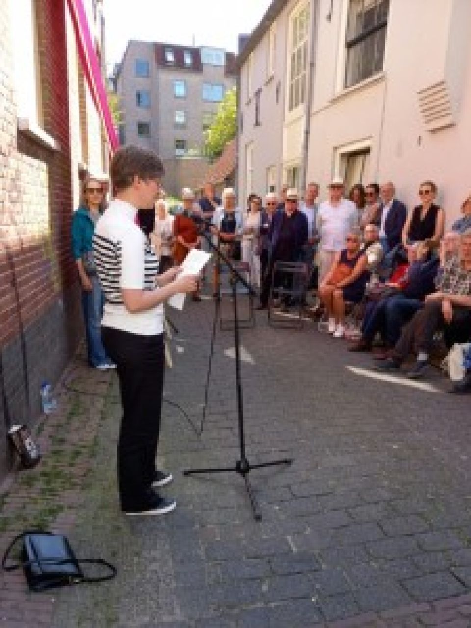 ‘Dit plein is van ons’, zo luidt het begin van het gedicht Nachtegaalplein van Rinske Kegel. Op 6 juni mocht ze samen met burgemeester Hubert Bruls het gedicht onthullen als literair baken, het 36e alweer.